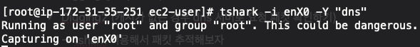캡쳐할 네트워크 디바이스는 enX0이며, 53번 포트(DNS 프로토콜) 을 사용하는 패킷을 캡쳐해보겠습니다.